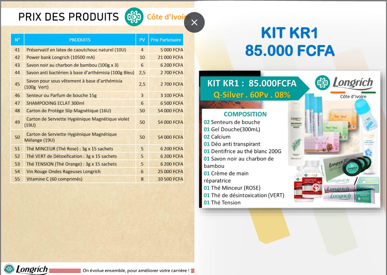 L'achat de ce kit vous donne votre code partenaire LONGRICH à vie.